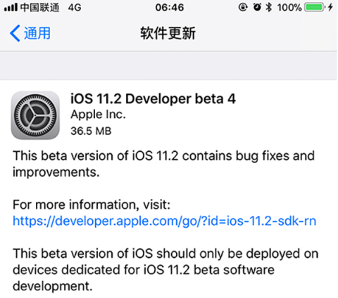 今天苹果公司发布了iOS 11.2的第四个开发者预览版,是在beta 3发布四天之后,本次更新主要以bug修复和性能提升为主。
