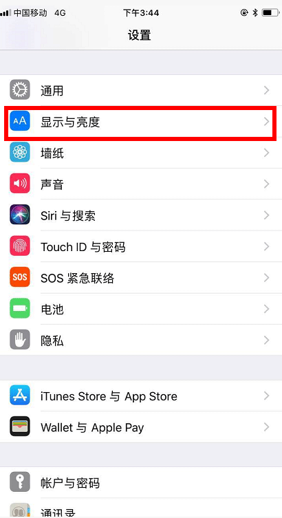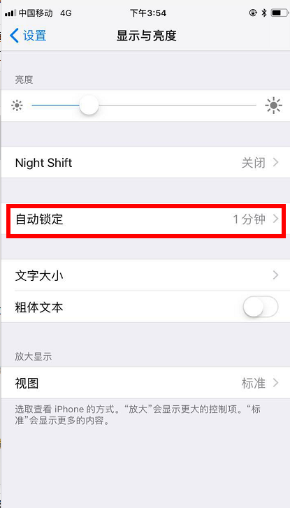 2.点击设置>显示与亮度,点击自定锁定,选择两分钟