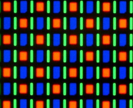 为了规避这样的情况,三星的OLED采用了Pentile子像素排列方式,让红色和蓝色元件的显示面积更大,而绿色元件显示面积更少的方式排列——但Pentile排列与LCD的标准RGB排列(即每个颜色的像素显示面积均等)相比,显得精度不够,早年的OLED屏幕经常被戏称为「大果粒」屏幕。
