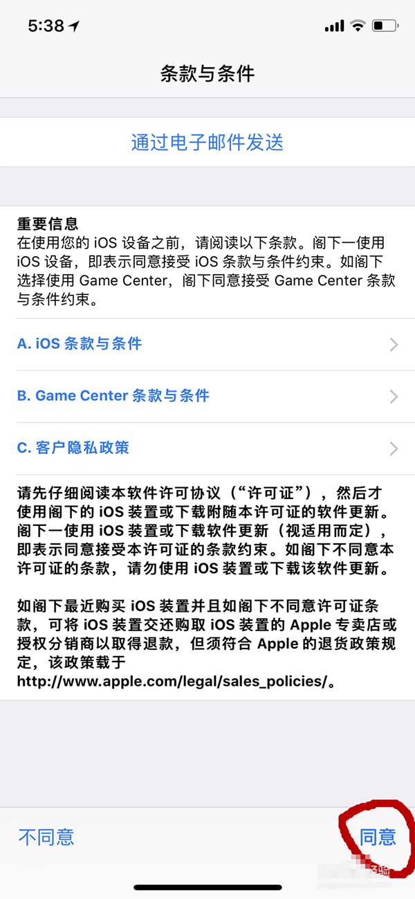 6、我们需要在条款与条件中选择最下方的同意,如果不放心这些条款与条件的话,可以先阅读一遍在做出选择