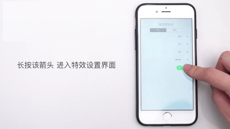 4、长按最右边的“箭头”进入特效设置界面