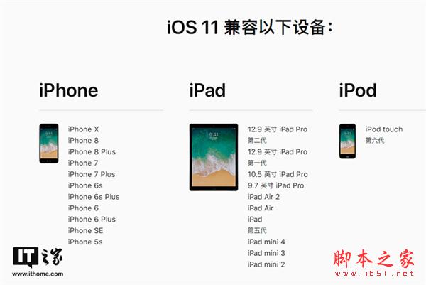 (注:本次iOS 11不再兼容支持iPhone 5、iPhone 5c、iPad 4设备)