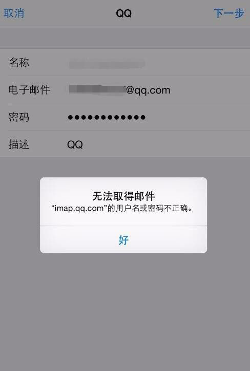iPhone设置QQ邮箱时显示用户名或密码错误的解决方法: