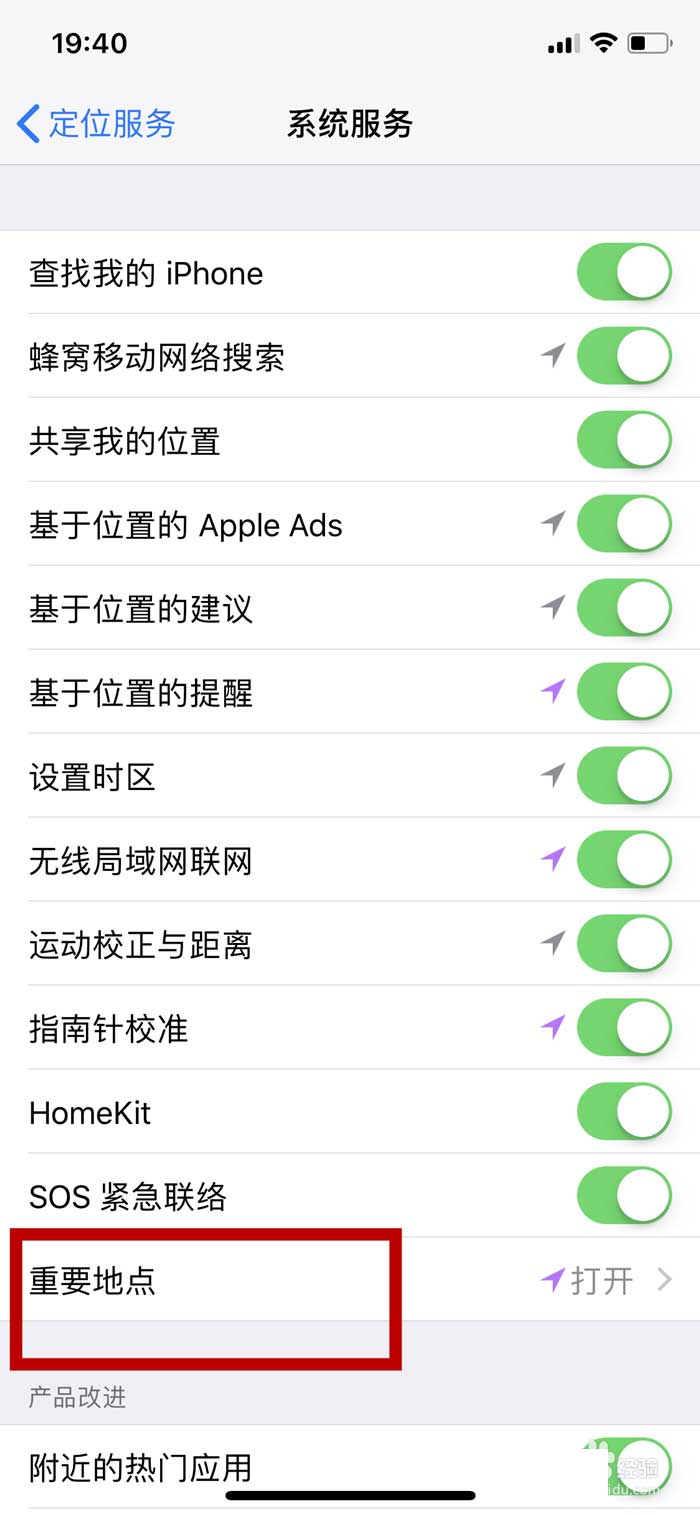 6、系统服务中的最下方我们可以看到【重要地点】,我们进入