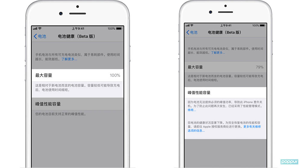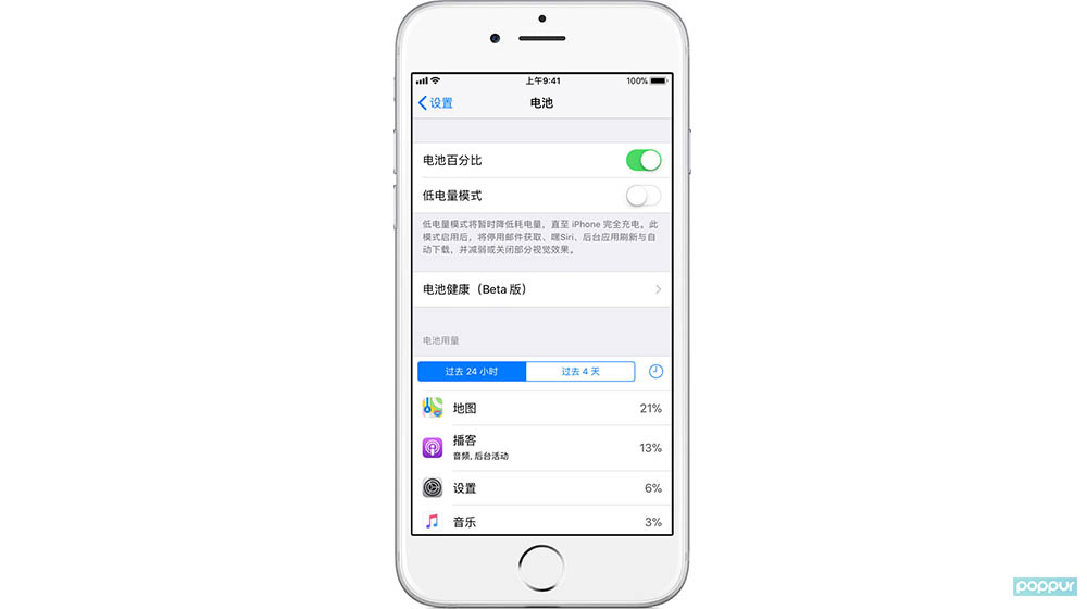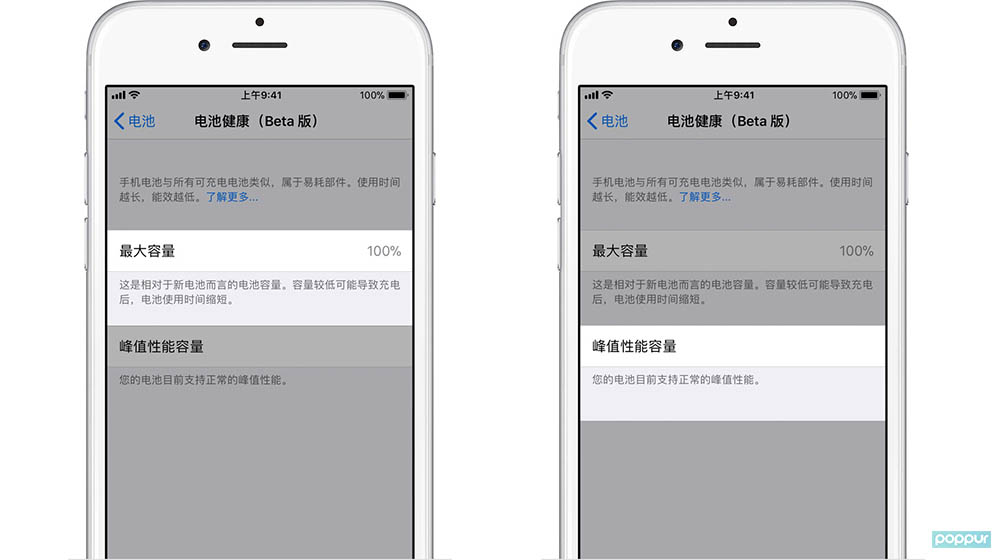 iOS 11.3 beta2,终于提供电池性能的开关,那么,如何找到降频开关呢?去年年末的iPhone降频事件撼动了整个手机行业。苹果认为,给旧设备降频是为了保证其续航能力,认为续航和性能之间,续航更为重要。但不少用户都表示不想自己被代表,性能比起续航来说更重要。所以苹果也因此吃了不少官司,前段时间还被美国政府部门约谈了。百般无奈之下,苹果也在上个月作出了承诺,将为后续的iOS系统加入性能开关。而这个性能开关,终于在今天凌晨推送的iOS11.3beta2上线了,只不过苹果美其名曰电池健康。关于iOS11.3电池健康功能,下面POPPUR将为大家作详细的讲解。