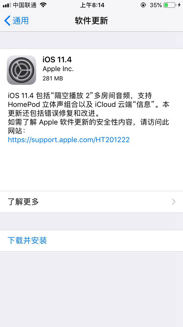 为了照顾大部分用户的升级方式,小编还是采用最为有效的升级方法来更新,那就是通过通过OTA方式升级iOS11.4正式版,这个方法是最简单的,也是最有效和安全的升级方式。