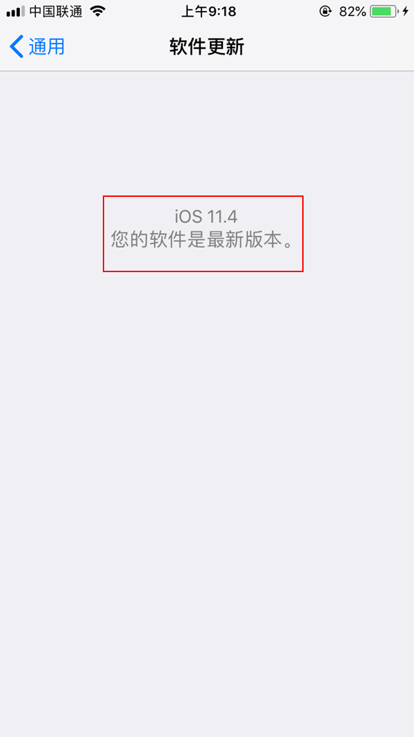 5、最后系统就会自动重启安装,安装过程约5分钟,重启之后我们再次进入软件更新页面查看,这个时候会显示您的软件是最新版本iOS 11.4.