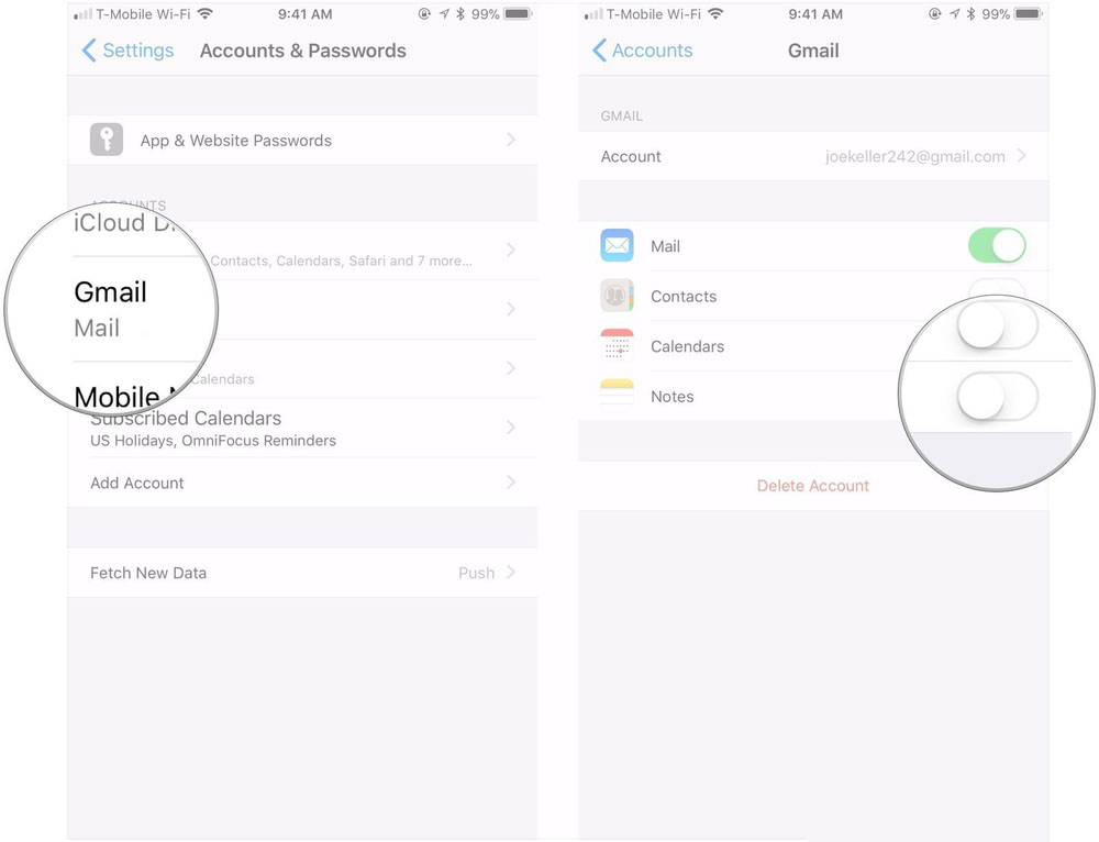 如果您只使用基本文本笔记,并且不是一个沉重的iCloud用户,则通过Gmail或Exchange等电子邮件服务进行同步可能是您的不错选择。