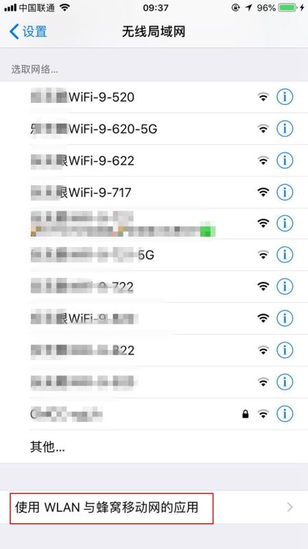 第三步:进入无线局域网之后,在页面下方找到并打开【使用WLAN与蜂窝移动网的应用】选项,如下图所示。
