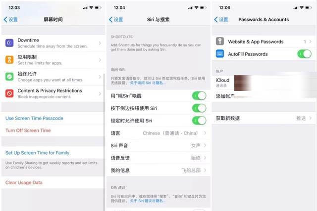 系统设置里存在部分英文显示的Bug,比如:屏幕时间、Siri简介和账户和密码等页面没有完全汉化。
