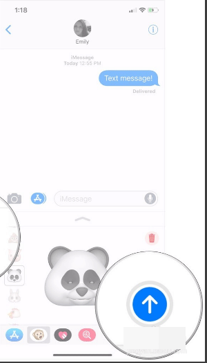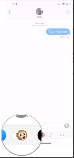 3、点击屏幕底部消息应用栏中的Animoji按钮。