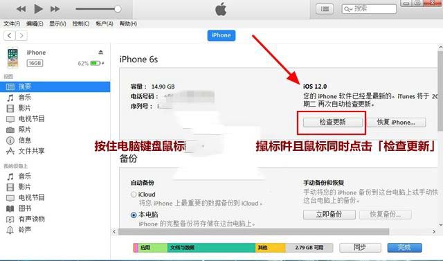 iOS12正式版发布之后,肯定会有固件供大家下载,下载之后在iTunes设备界面按住Shift同时左键点击“检查更新”后选择固件,接下来交给iTunes即可平行更新至正式版系统,且不会丢失数据。