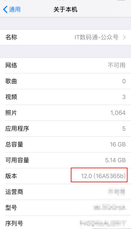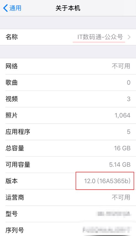 iOS12 beta11版本号16A5365b
