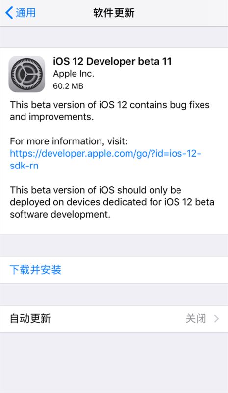 最大bug,那就是更新iOS12 beta11系统之后,依旧有跳窗提醒更新,这个bug在上一个版本也存在,如下图所示。