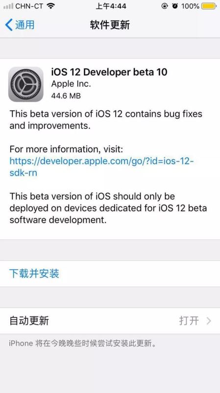我们主要通过两种方式进行升级,一是先安装iOS12描述文件,然后进入软件更新即可收到系统推送;二是下载iOS12 beta10固件,通过线刷的方式进行升级,如果你的设备当前还是iOS9、iOS10系统,那么是不能直接升级的,必须先升级iOS11系统才能进行在线升级。