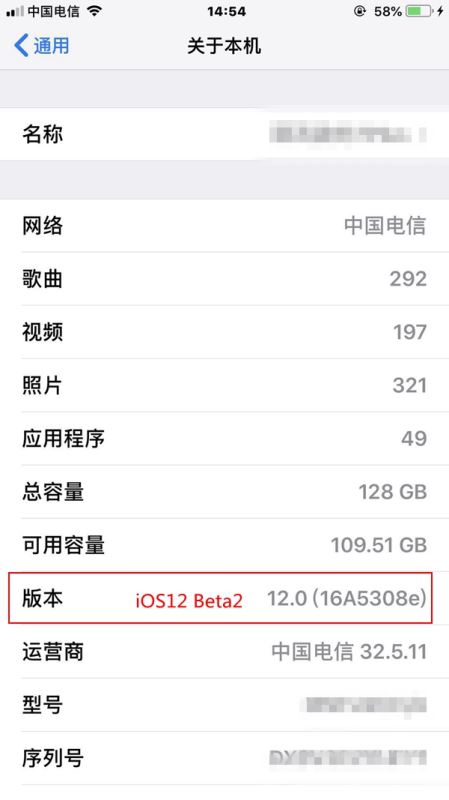 iOS12 beta2版本号为16A5308e ≒ iOS12公测版beta1