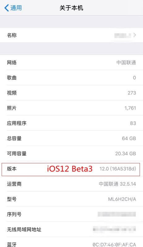 iOS12 beta3版本号为16A5318d ≒ iOS12公测版beta2