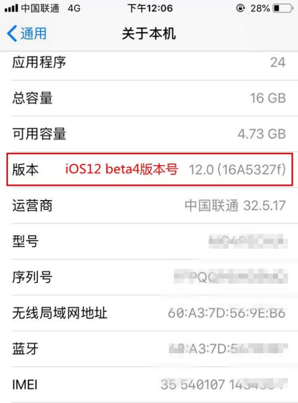 iOS12 beta4版本号为16A5327f ≒ iOS12公测版beta3