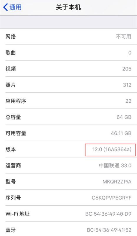 iOS12 beta10版本号为16A5364a ≒ iOS12公测版beta8