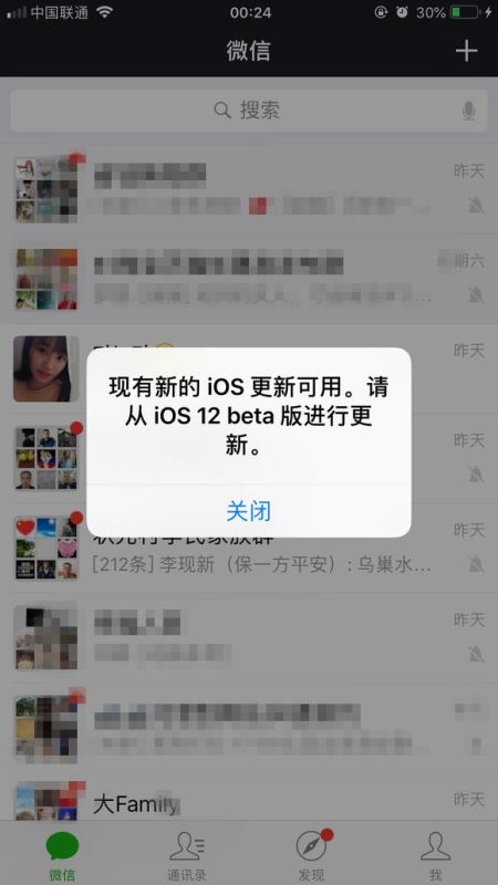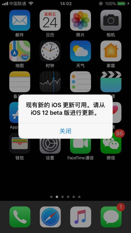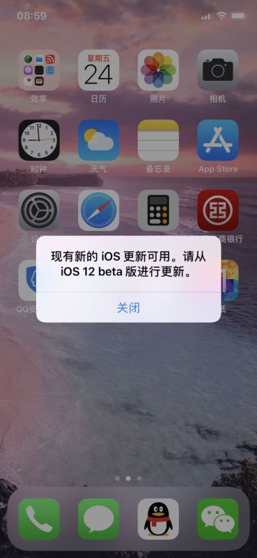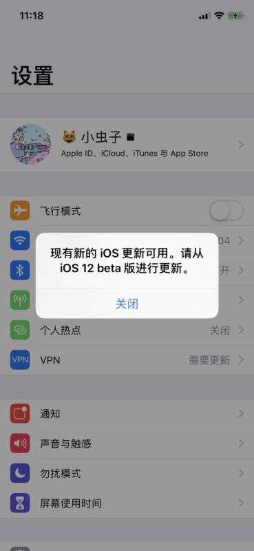 我们先来看看网友向我们反馈的截图,文字提示“现有新的iOS更新可用。请从iOS12 beta版进行更新”,如下图所示。