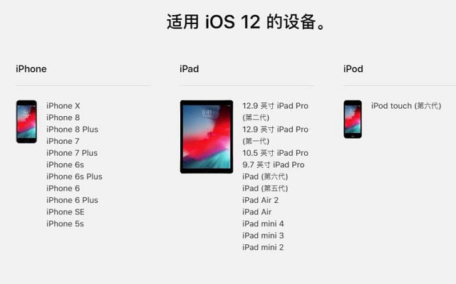 最新的iOS12仅支持iPhone 5s以上版本手机、iPad mini2以上版本的平板电脑,另外也支持第六代iPod Touch。满足升级要求的果粉用户,不妨等待9月18日第一时间更新体验吧。