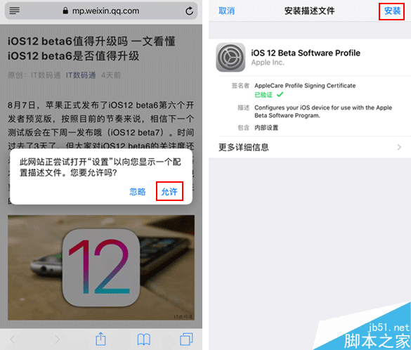 看完之后,不知道大家明白没有。如果你的系统是iOS11.4正式版或iOS11.4.1正式版系统,我们只需要安装iOS12 GM版描述文件即可,直接使用Safari浏览器打开对应描述文件,安装并重启后,直接在系统更新下检查并下载安装更新即可。