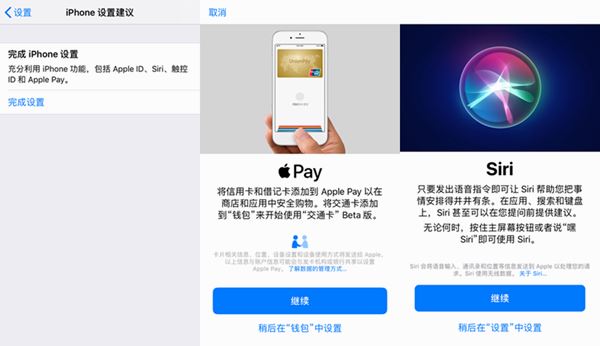 提示我们需要完成Pay、Siri等设置,设置完成之后,我们会发现桌面设置的数字1不见了,如下图所示。