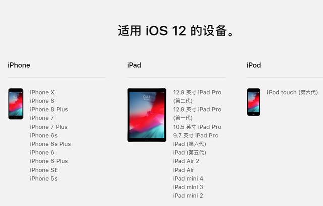 接下来来看看iOS12支持哪些机型?