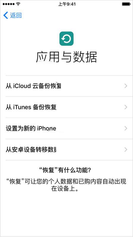 更新至iOS12之后,朋友们可以在激活页面选择使用iCloud或使用iTunes来恢复数据,当然了我们也可以“从安卓设备转移数据”。