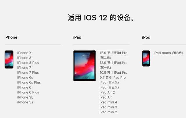 12.9英寸iPad Pro第二代、12.9英寸iPad Pro第一代、iPad第五代、iPad mini 4、iPad mini3、iPad mini 2、10.5英寸iPad Pro、9.7英寸iPadPro、iPad Air 2、iPad Air.