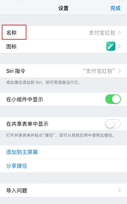 第三步、进入到捷径设置界面之后,我们便可在设置页面下方看到【名称】选项,我们可以点击进入进行修改重命名,当然了该设置页面也可以修改图标,如下图所示。