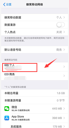 4、点击蜂窝移动网络标签进入, 如下图所示