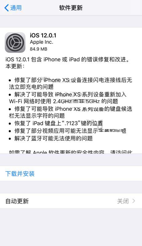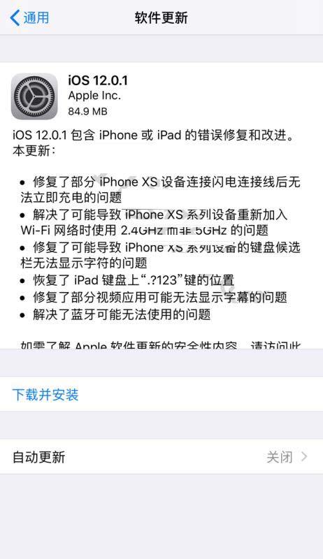 iOS 12.0.1 包含 iPhone 或 iPad 的错误修复和改进。本更新: