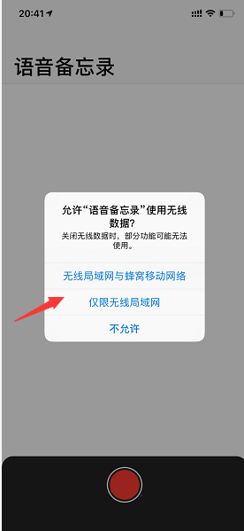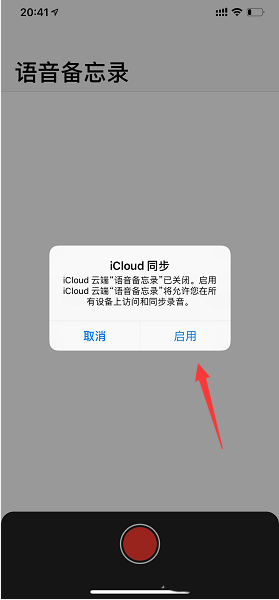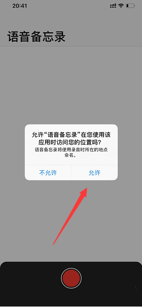 4、首次启用语音备忘录,首先赋予位置和数据权限,开启icloud同步,如下图所示