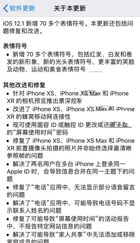 iOS12.1新增70多个表情符号。本更新还包括问题修复和改进。