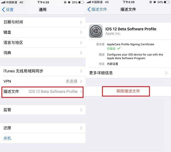 对于iOS12.1.1测试版和公测版用户,如果要升级正式版,请先删除描述文件,然后重启设备,之后再按照上面的方法升级即可。