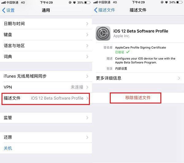 当然,如果您还停留在比较低的iOS12.1.1测试版,或更低版本的话,升级正式版就比较方便了。只要先删除描述文件,然后重启设备,之后就可以按照正式版的升级方法,在线OTA升级啦。