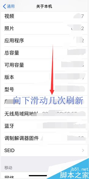 后台关闭设置,主界面重新点击设置--通用--关于本机就可以看到了,慢一点的需要升级后等待15分钟,如下图所示