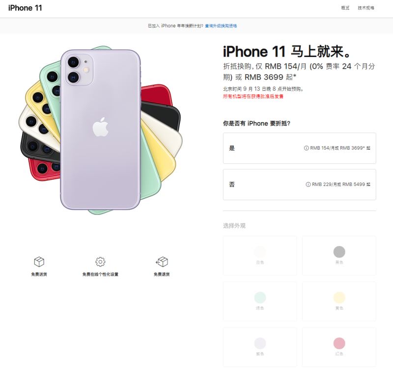 据苹果官网页面显示,iPhone 11系列以旧换新价格如下: