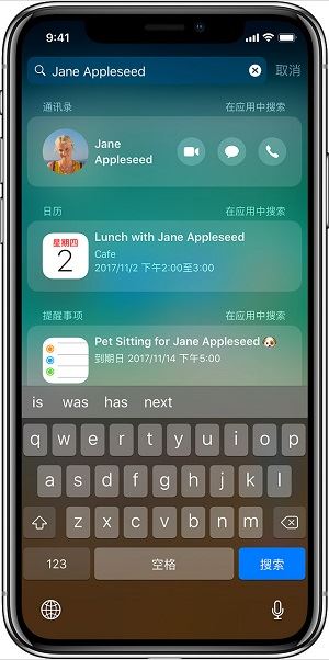 从屏幕中间向下轻扫,即可呼出「搜索栏」,快速查找设备和网络上的信息。