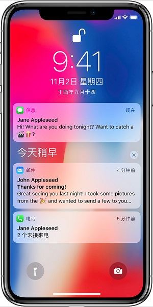 从屏幕顶部向下轻扫即可查看通知中心。