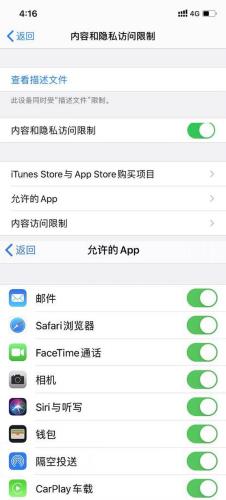 前往 iPhone “设置”-“屏幕使用时间”-“内容和隐私访问限制”-“允许的 App” 中将 “隔空投送” 打开,然后再尝试开启此功能。