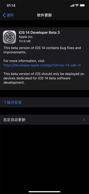 安装正确的开发者配置文件后,可以从Apple开发人员中心或通过OTA推送下载iOS 14或者iPadOS 14。