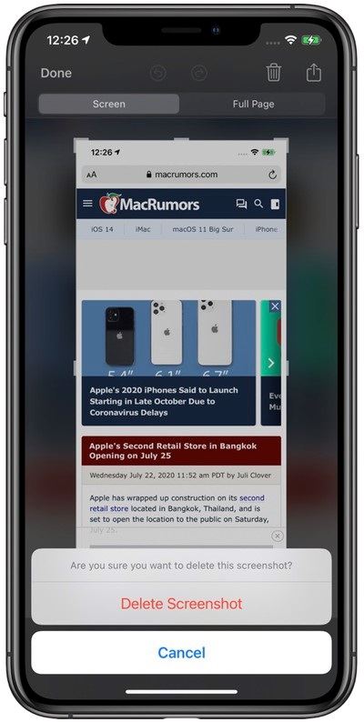 · 屏幕截图编辑:在iOS 14 beta 3 中删除屏幕截图时,界面略有不同。