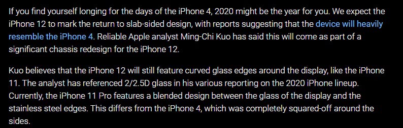 知名分析师郭明錤此前认为,iPhone12 系列将包括 2D/2.5D 的面板设计。