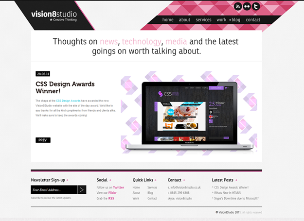 三角形的不平衡性及其尖锐性能够增强视觉上的刺激,快速吸引用户,可以用于科技和时尚这种风格同样比较"锋利"的网页。