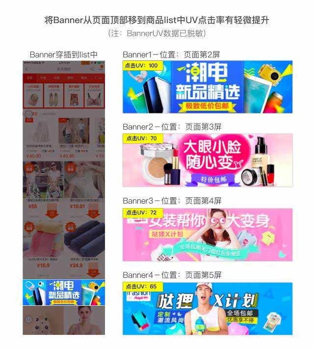 将Banner从页面顶部移动到商品list中UV点击率有轻微提升