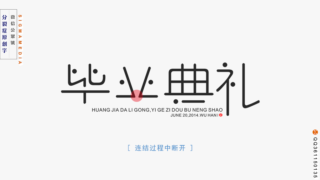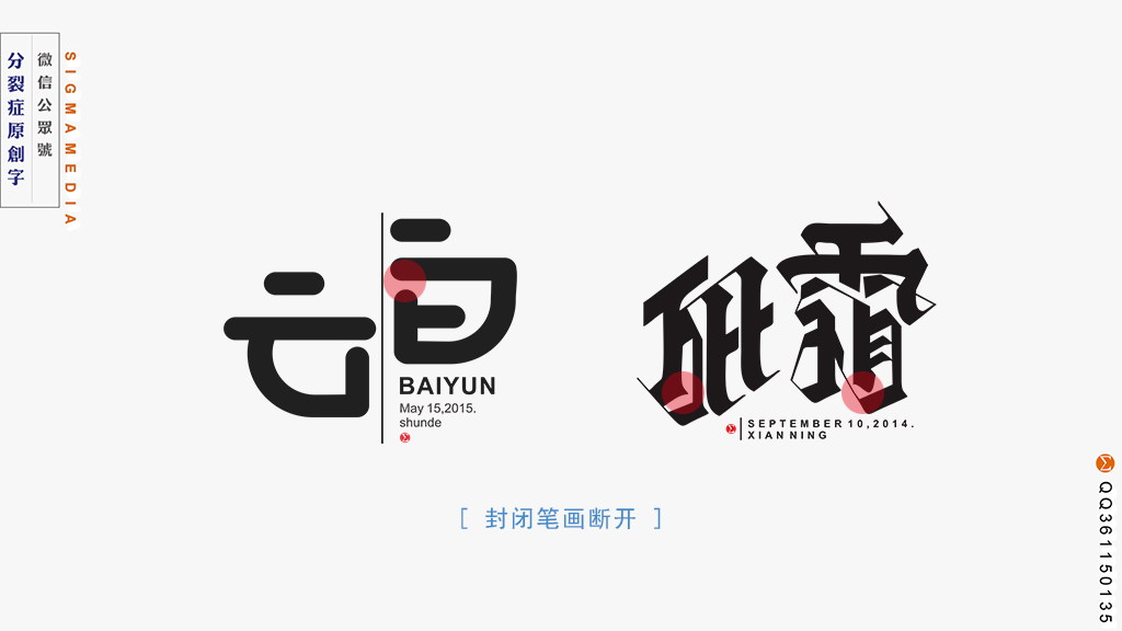 字体设计其实就是把字体艺术化的过程,就是为了在保证意思明了的基础上让字有更美的视觉展现,可是我们每天都见到大量的汉字,对字的感知几乎到了熟视无睹的地步,而断笔就是把我们熟知的字作断开笔画处理,这样很容易让人眼前一亮,产生新奇感。
