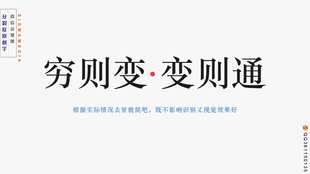 我们并不是一言不合就动刀动斧舍弃笔划,而是为了造型需要和视觉上的完美和谐而精简掉繁琐的笔划。当然啦,舍弃笔划是精简,精简!简!不是盲目的删除!