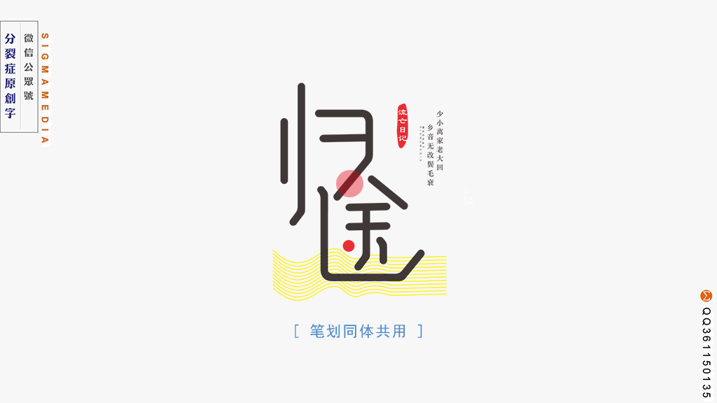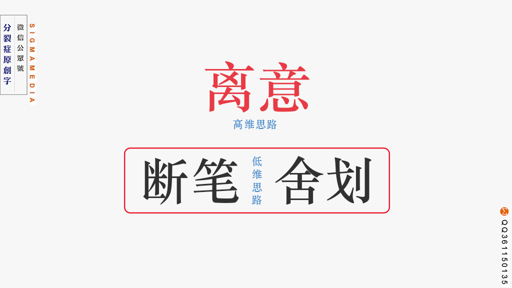 如果说断笔、舍划是着眼于具体设计的低维思路,辣么,离意就是更高维的字体设计思路。
